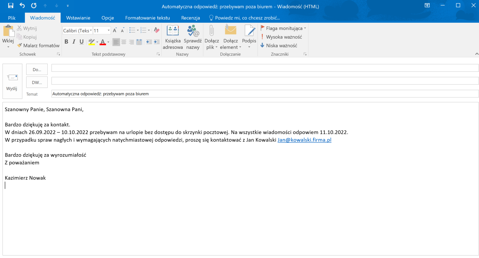 - Offers alternatives: “For urgent matters, contact [colleague’s name] at [email].”
