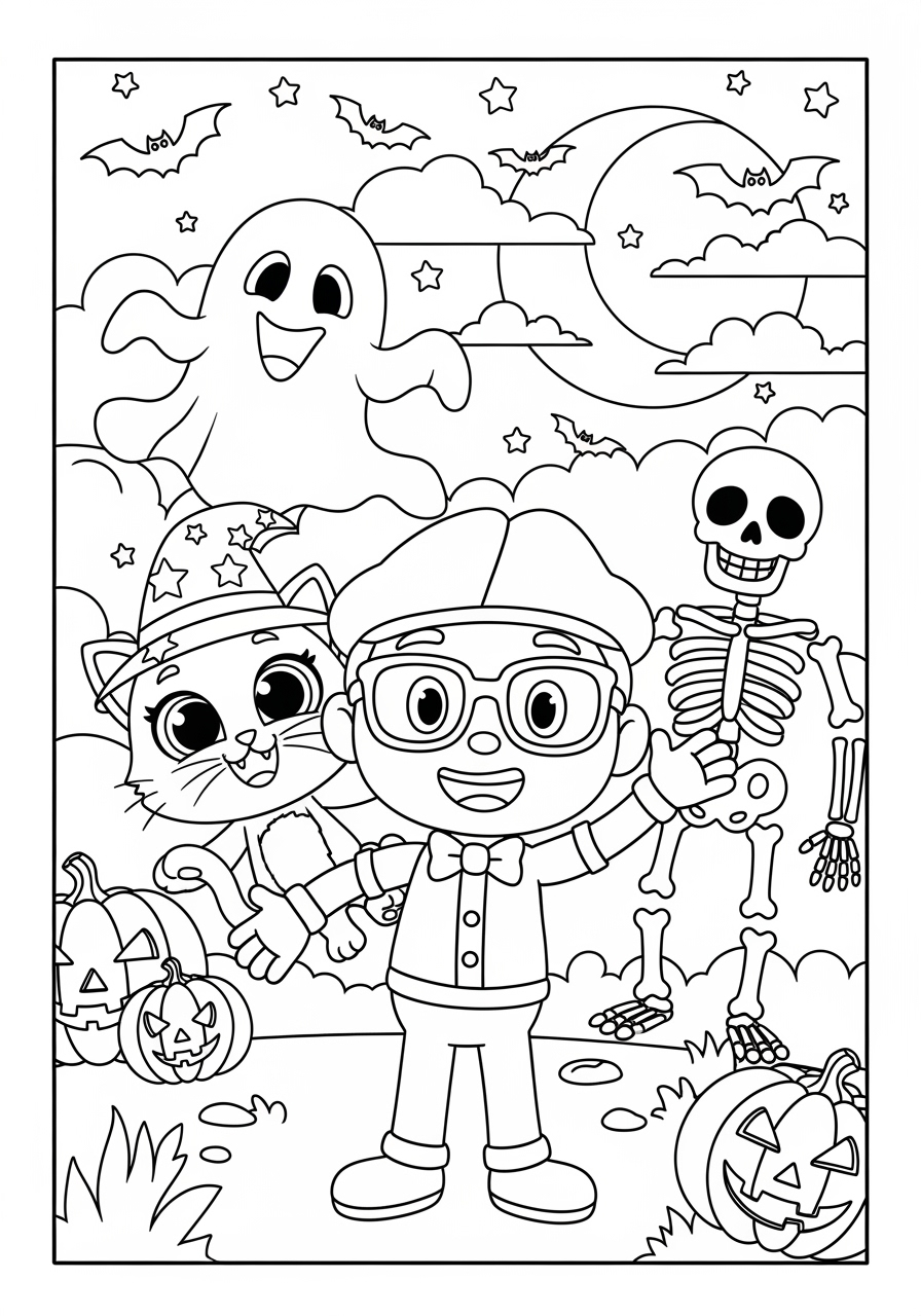 Blippi’s appeal lies in his ability to turn everyday objects into exciting learning opportunities. Halloween is no exception. His Blippi Halloween coloring pages often feature pumpkins, friendly ghosts, and trick-or-treat adventures—all designed to spark imagination. Unlike generic coloring sheets, these pages incorporate Blippi’s signature colors (bright orange, blue, and green) and his playful, approachable style. Kids instantly recognize his hat, suspenders, and cheerful grin, making the coloring experience feel like an extension of their favorite show.