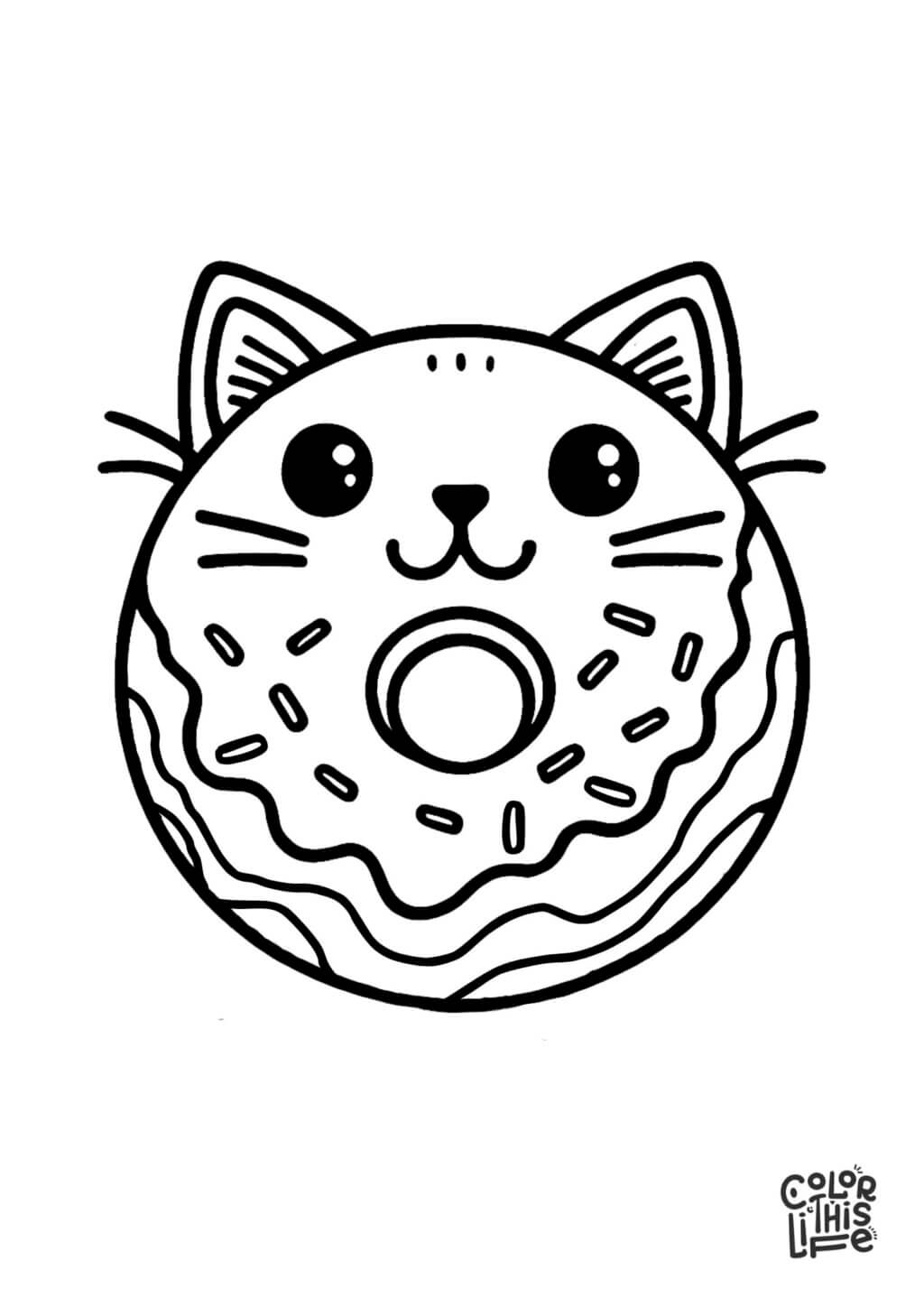 For those looking to add some variety to their coloring routine, there are many different types of cat donut coloring page designs to choose from. Some feature cute and playful cats surrounded by donuts, while others depict more elaborate scenes, such as cats baking donuts or enjoying a donut-themed party. These different themes and scenarios can provide inspiration for users, encouraging them to think outside the box and come up with their own unique ideas and interpretations. As they explore the various design possibilities and creative options, users can develop their problem-solving skills and learn to think more imaginatively.Using the Cat Donut Coloring Page as a Tool for Self-Expression