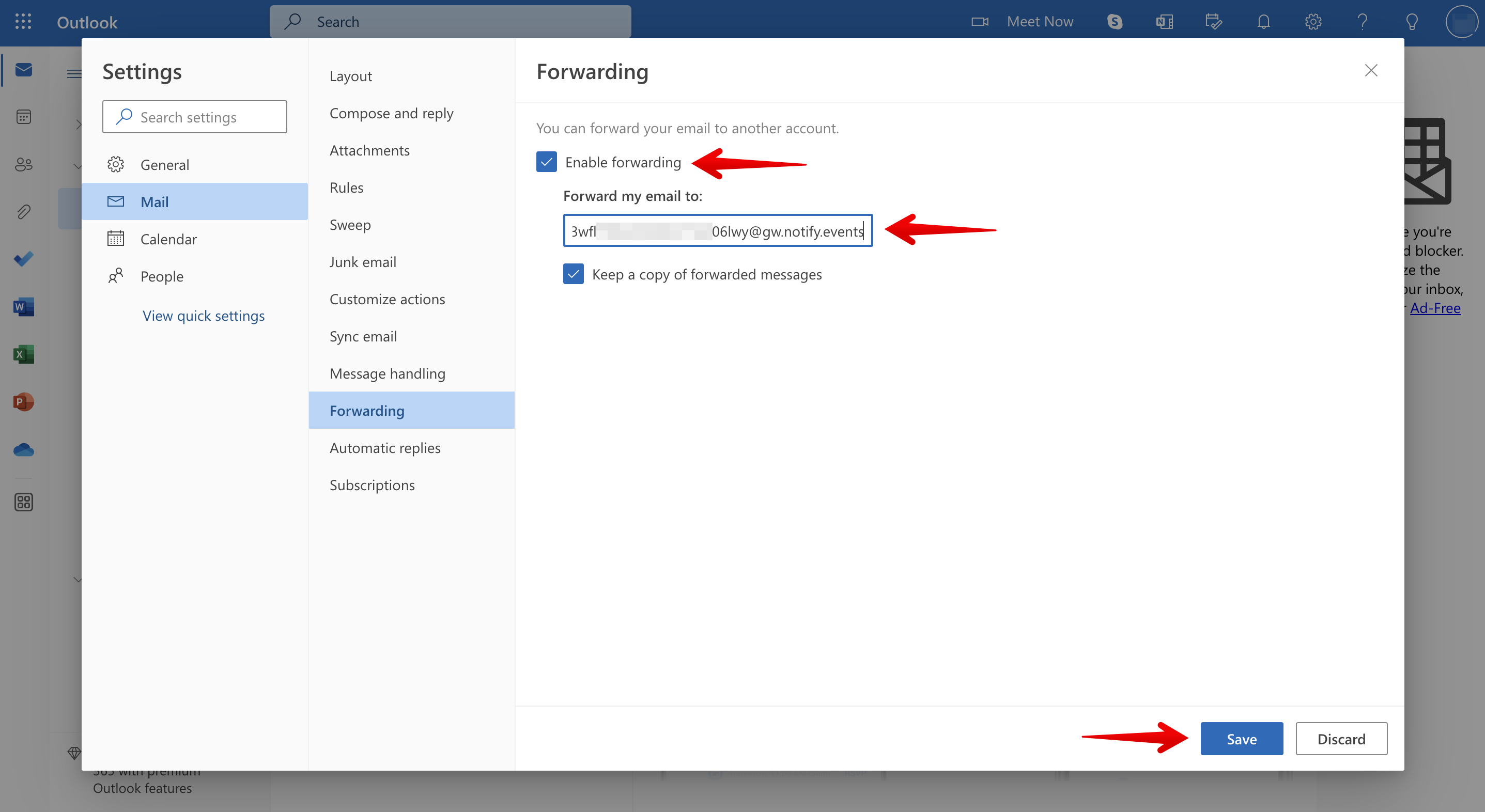 Forwarding from Outlook on the Web (Outlook.com or Office 365)