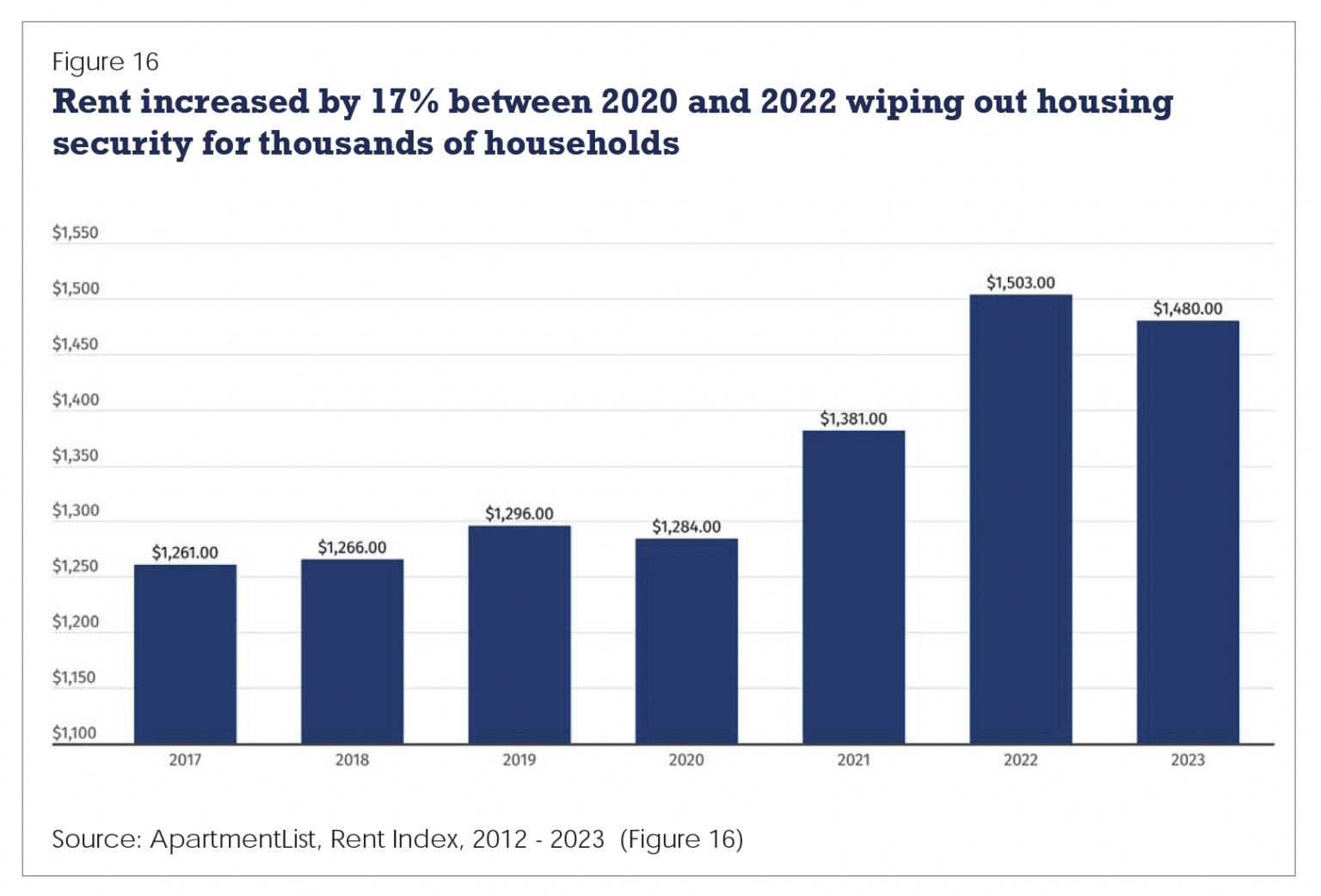 - Rent burden: 46% of renters spend more than 30% of income on housing; 23% spend over 50%