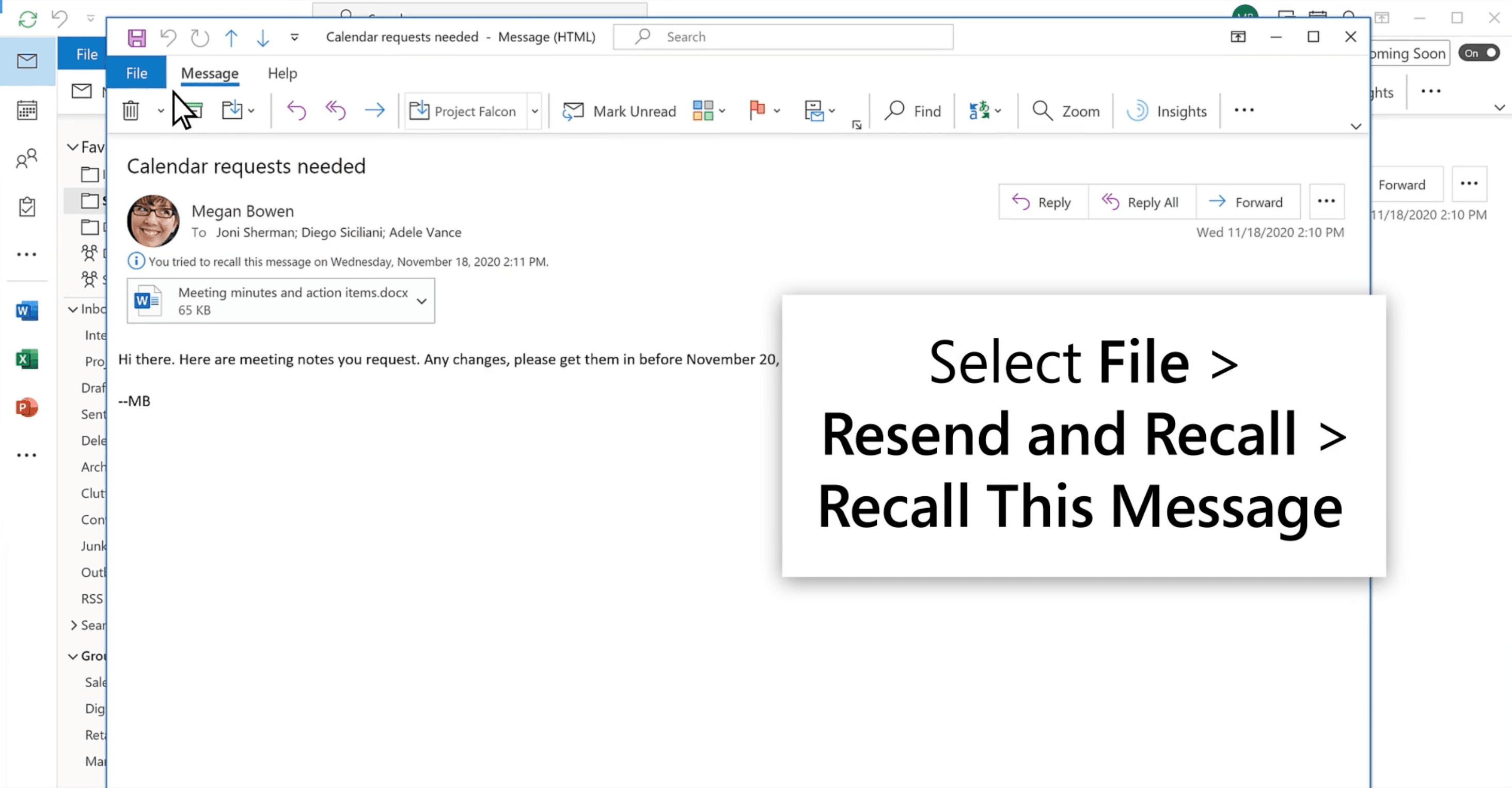 - Check Tell me if recall succeeds or fails for each recipient. This gives you closure—one way or another.